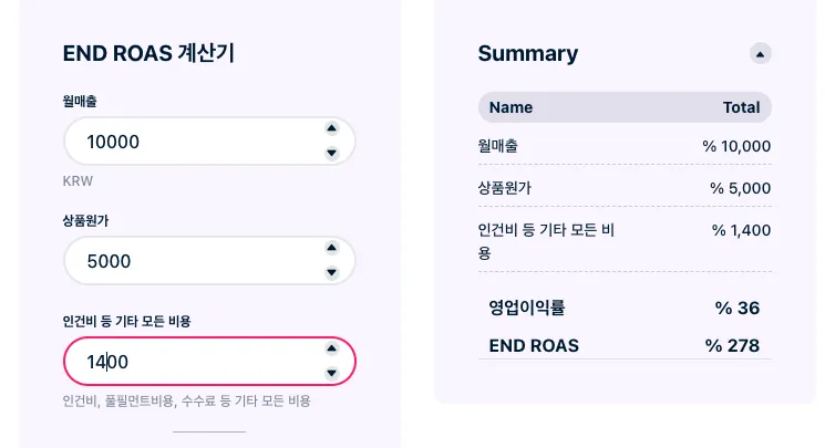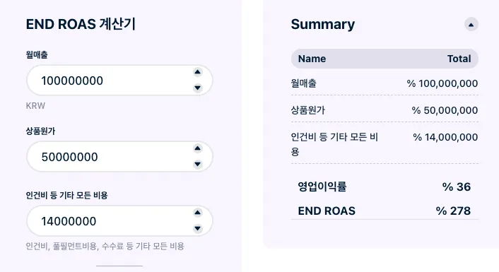 그럼 우린 Roas를 278% 이상은 찍어야 합니다.
