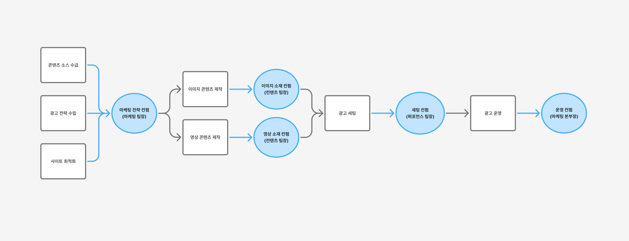 [ 제품 → 사이트 → 상페 → 광고 → 광고운영 ]